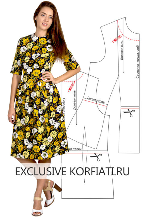 Выкройка платья с широкими рукавами